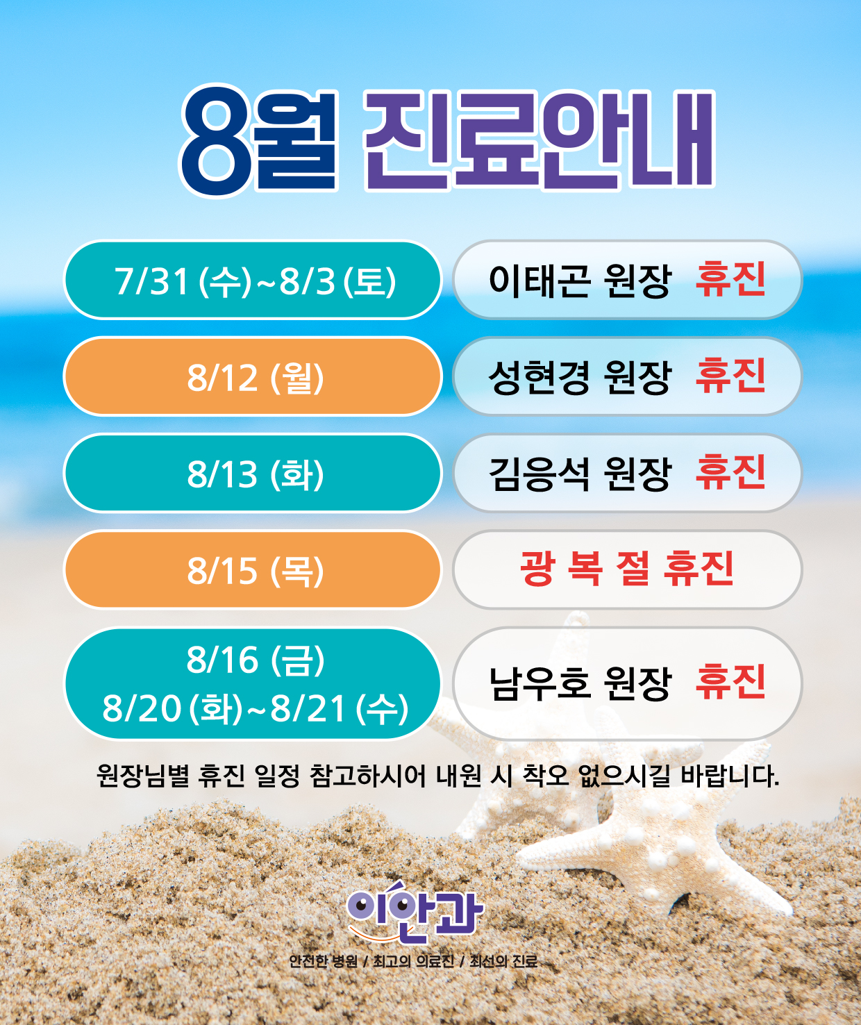8월 진료안내